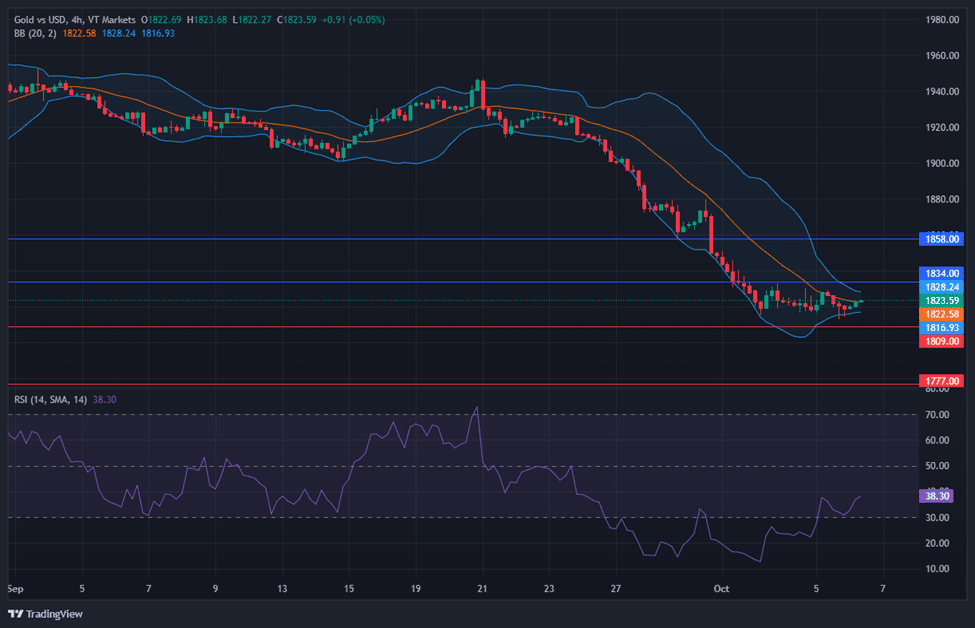 The XAU/USD pair is trading close to a recent multi-month low of $1,813 per troy ounce, marking its ninth consecutive day of decline. Despite the US Dollar’s correction from multi-month highs, Gold struggles to attract buyers. Concerns over persistent inflationary pressures and a tight labor market persist as investors remain cautious, driven by hawkish comments from Federal Reserve officials and mixed employment sector signals. With the release of the September Nonfarm Payrolls report looming, the stability in US Treasury yields at slightly lower levels is preventing a near-term Dollar rally.